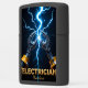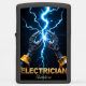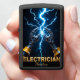 This futuristic design boldly reimagines the electrician's craft with a high-tech edge. The image features two powerful, stylized robotic or mechanical hands (or advanced tools) converging at a central point. From this intense nexus, a brilliant blue electrical spark erupts, sending striking lightning bolts across a dark, ethereal background. This visual symbolizes the precision, control, and advanced technological expertise an electrician commands, even hinting at the future of automated electrical work. The bold, golden text "ELECTRICIAN" at the bottom makes a strong professional statement. This lighter is an exceptional, modern gift for any professional, celebrating their mastery over complex systems and the cutting-edge evolution of the electrical trade.