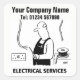 Electrician cartoon with company name and telephone number. Electrical company sticker for all kinds of business promotional use.