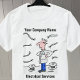 Electrician is surrounded by cables. Promote your Electrical Services business with a cartoon T-Shirt. Make it personal by adding your company name to the front and back. Also add your telephone number to the reverse.
