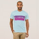 Electro EDM music shirt in purple and pink design. Shown on a blue model, but looks great on any color of light or dark apparel.