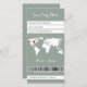 This electronic boarding pass save the date card is the perfect choice for couples planning a destination wedding. The unique design features a world map and destination pin, highlighting the excitement of travel and adventure. The sage green color adds a touch of elegance and sophistication to the card, while the electronic boarding pass style adds a fun and modern twist. This card is sure to impress your guests and get them excited for your special day. Whether you're getting married in a tropical paradise or a far-off city, our save the date card will make your destination wedding unforgettable. Order now and let your love take flight!