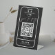 Minimalist Business Payment table top sign with Scannable QR code which can be used for paypal, venmo, google pay or any other electronic payment method. With a trendy black background and white text and phone graphic, this scan to pay QR code sign will make it quick and easy for your customers to pay using their phone or tablet. Simply add your own QR code and logo and make your digital payment table top sign for your boutique, craft market or salon.