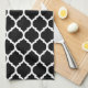 Elegan Black White Moroccan Quatrefoil Pattern Bat Kitchen Towel
