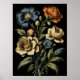 Vintage flax floral poster with a touch of charming artistry on a black canvas. Timeless elegance for your space.