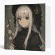 A serene young maiden dressed in refined gothic attire, holding a delicate branch of pale blossoms. Her calm yet distant gaze contrasts with the depth of the dark Victorian fabric surrounding her, creating a balance between softness and somber elegance. The blossoms symbolize quiet resilience, small points of life and purity that stand out against the muted, shadowed world behind her. The piece reflects themes of grace, introspection, and the quiet strength found in enduring both beauty and darkness.