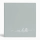 Elegant Chic Modern Sage Green Monogram Name Signature Script Custom Personalized 3 ring Binder. This delicate design featuring custom name in a cursive hand lettered swash tail font calligraphy (or typography) on sage green or dusty green color background. These are easy to customize it. Great stylish feminine housewarming gift, also for birthday, sweet 16 birthday party, wedding, baby shower, bridal shower, for graduation party and It’s for the girl who loves minimalist stylish things.