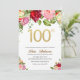 Elegant 100th Birthday Celebration Watercolor Glitter Floral Invitation