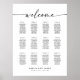 Modern Script Wedding Seating Plan. Welcome sign. Personalized Simple Minimalist Seating Chart for 120 guests (12 tables). Just click the customize further link, shown under the text personalization area on the right, and choose your custom color background. This sign poster template makes it fast and easy to create stunning additions to your wedding decor. Signs can be enlarged, there are many sizes to choose from, as well as options for custom framing and matting.