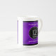Celebrate the 12th silk wedding anniversary with a couple of these commemorative bone china mugs! Elegant lettering on a luxurious purple silk background add a memorable touch for this special occasion and milestone. Customize with the couple's names, dates of marriage and congratulatory messages. Reverse shows identical design.