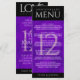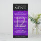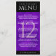 Add sophistication to 12th silk wedding anniversary celebrations with this dinner menu, which features elegant lettering on luxurious purple silk and black backgrounds. Customize with couple's names, dates of marriage, venue details, menu items, and congratulatory messages.