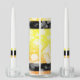 Make the 13th citrine wedding anniversary or the renewal of your vows an unforgettable celebration with this commemorative unity candle set! Elegant lettering with hexagonal confetti on a yellow orange mosaic background add a memorable touch for this special occasion and milestone. Customize with couple's names, initials, and dates of marriage.
