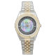 Celebrate the 14th opal wedding anniversary with this commemorative watch! Elegant lettering with hexagonal confetti on an iridescent opal background add a memorable touch for this special occasion and milestone. Customize with couple's names, dates of marriage, and congratulatory messages.