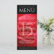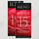 Add sophistication to 15th rose wedding anniversary celebrations with this dinner menu, which features elegant lettering on romantic red rose and black backgrounds. Customize with couple's names, dates of marriage, venue details, menu items, and congratulatory messages.