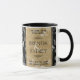 Celebrate the 1st paper wedding anniversary with a couple of these stylish mugs! Elegant black lettering with hexagonal confetti on an aged paper background edged by black bars add a memorable touch for this special occasion and milestone. Personalize with the couple's names, dates of marriage, and congratulatory messages.
