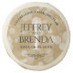 Celebrate the 1st paper wedding anniversary with these tasty sugar cookies! Elegant lettering with hexagonal confetti on an aged paper background add a memorable touch for this special occasion and milestone. Customize with the couple's names, marriage dates, and a congratulatory message.