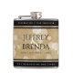 Celebrate the 1st wedding anniversary with this commemorative hip flask! Elegant black and white serif lettering with hexagonal confetti on an aged paper background add a memorable touch for this special occasion and milestone. Customize with the happy couple's names, years of marriage, and congratulatory messages for their paper anniversary.