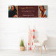 Modern graduation party banner featuring a stylish burgundy background that can be changed to any color, two photos of the graduate, gold sparkly glitter, the word "congratulations" in a faux gold foil script, the graduates name, school, and class year.