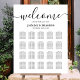 Modern 20 wedding table plan foam board featuring a stylish white background, the word "welcome" in a elegant calligraphy script font, your names, wedding date, and a wedding seating chart template of 20 tables.