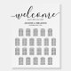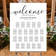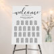Modern wedding table seating chart plan foam board featuring a stylish white background, the word "welcome" in a elegant calligraphy script font, your names, wedding date, and a wedding seating chart template of 22 tables.