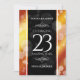 Make the 23rd imperial topaz wedding anniversary an unforgettable celebration with these save the date announcements! Elegant black and white lettering with hexagonal confetti on deep yellow-red-orange moire and black backgrounds add a memorable touch for this special occasion and extraordinary milestone. Customize with couple's names, venue, address, date, and time.
