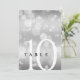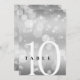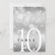 Add sophistication to 25th silver wedding anniversary celebrations with this table card, which features elegant lettering and hexagonal confetti on a silver foil background. Customize with table number. Reverse shows identical design.