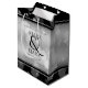 Celebrate the 25th wedding anniversary in style with this commemorative gift bag! Elegant black serif lettering with hexagonal confetti on a silver background edged by black bars add a memorable touch for this special occasion and extraordinary milestone. Customize with the happy couple's names, and add dates for their silver anniversary. Personalized messages can be added to the top and bottom of the gift bag.