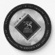 Celebrate the 25th silver wedding anniversary with these stylish paper plates! Elegant black and white lettering with hexagonal confetti on a silver foil background add a memorable touch for this special occasion and extraordinary milestone. Personalize with couple's names, date(s) of marriage, and congratulatory messages on the rims.