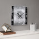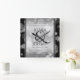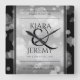 Celebrate the 25th wedding anniversary with this commemorative clock! Elegant black serif lettering with hexagonal confetti on a silver background edged by black bars add a memorable touch for this special occasion and extraordinary milestone. Customize with the happy couple's names, and add dates for their silver anniversary. Personalized messages can be added to the top and bottom of the clock.
