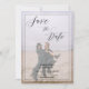 A modern romantic calligraphy save the date card with 2 photos grid collage.