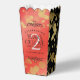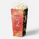 Celebrate their 2nd garnet wedding anniversary (and a movie-worthy love story) with these stylish popcorn style favor boxes! Elegant lettering with gold-dusted hexagonal confetti on a reddish orange background bordered by black panels add a memorable touch for this special occasion and extraordinary milestone. Personalize with couple's names, dates of marriage, and messages.