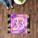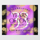 Add sophistication to 33rd amethyst wedding anniversary celebrations with this floor decal, which features elegant lettering with gold-dusted hexagonal confetti set on an amethyst purple background and bordered by black bars. Customize with couple's names, dates of marriage, and messages.
