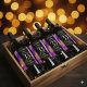Celebrate the 33rd amethyst wedding anniversary with these commemorative drink labels! Elegant white lettering with gold-dusted hexagonal confetti on an amethyst purple background add a memorable touch for this special occasion and extraordinary milestone. Customize with couple's names and dates of marriage.