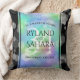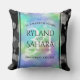 Celebrate the 34th wedding anniversary with this stylish throw pillow! Elegant lettering with hexagonal confetti on an iridescent opal background edged by black bars add a memorable touch for this special occasion and extraordinary milestone. Customize with the couple's names, dates of marriage, and congratulatory messages for their opal anniversary. Reverse shows identical design.