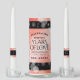 Make the 35th coral wedding anniversary or the renewal of your vows an unforgettable celebration with this commemorative unity candle set! Elegant lettering with hexagonal confetti on a coral pink background add a memorable touch for this special occasion and extraordinary milestone. Customize with couple's names, initials, and dates of marriage.