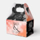 Celebrate the 35th wedding anniversary with these commemorative favor boxes! Elegant black and white serif lettering with hexagonal confetti on alternating coral and black backgrounds add a memorable touch for this special occasion and extraordinary milestone. Customize with the happy couple's names, years of marriage, and personalized congratulatory messages for their coral anniversary.