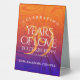 Add an extra special touch to 39th agate wedding anniversary celebrations with this stylish table tent sign! Elegant lettering on a swirling, burnt orange to deep purple background add a memorable touch for this special occasion and extraordinary milestone. Customize with couple's names, dates of marriage, and congratulatory messages.