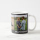 This modern 3-photo collage folded coffee mug is perfect for a couple. The simple blue color design features unique industrial lettering typography. Customizable in any color. Keep the design minimal and elegant, or personalize it by adding your photos.