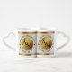 Nothing says "you complete me" or "your better/other half" than lovers' mugs. Celebrate the 3rd leather wedding anniversary with this stylish pair! Elegant black lettering with gold-dusted hexagonal confetti on a luxurious white leather background bordered by gold foil add a memorable touch for this special occasion and milestone. Customize with couple's initials, dates of marriage, and congratulatory messages.