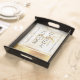 Celebrate their 3rd leather wedding anniversary with this stylish wooden serving tray! Elegant black lettering with gold-dusted hexagonal confetti on a luxurious white leather background bordered by gold foil add a memorable touch for this special occasion and milestone. Customize with couple's names, dates of marriage, and congratulatory messages.