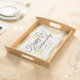 The serving tray was a great gift for a couple married 55 years. We like the personal names on the tray, and the well constructed frame. Very happy with the craftsmanship and the packaging. The printing was great every thing was great.