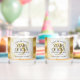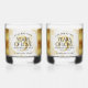 Make the 3rd leather wedding anniversary an unforgettable celebration with a couple of these commemorative stemless wine glasses! Elegant lettering with gold-dusted hexagonal confetti on a luxurious white leather background bordered by gold foil add a memorable touch for this special occasion and milestone. Customize with couple's names, dates of marriage, and congratulatory message. Reverse shows identical design.