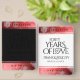 Celebrate the 40th ruby wedding anniversary with this commemorative foil vow book set! Elegant lettering with hexagonal confetti on ruby red and black (or white) backgrounds add a memorable touch for this special occasion and extraordinary milestone. Personalize with couple's names, dates of marriage, and messages.