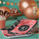 Celebrate their 40th ruby wedding anniversary with these stylish paper plates! Elegant black and white lettering with hexagonal confetti on ruby red and black backgrounds add a memorable touch for this special occasion and extraordinary milestone. Personalize with couple's names and dates of marriage.