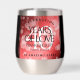 Make the 40th ruby wedding anniversary an unforgettable celebration with this commemorative stainless steel stemless wine tumbler! Elegant lettering with hexagonal confetti on a ruby red background add a memorable touch for this special occasion and extraordinary milestone. Customize with couple's names, dates of marriage, and congratulatory message. Reverse shows identical design.