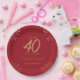 Add a touch of timeless elegance to your celebration with these Elegant 40th Wedding Anniversary Paper Plates, featuring a rich ruby red background accented with luxurious gold-colored writing and details. Perfectly designed to complement your ruby anniversary invitations, these plates bring a sophisticated, coordinated look to your table décor.