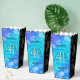 Celebrate their 41st blue topaz wedding anniversary (and a movie-worthy love story) with these stylish popcorn style favor boxes! Elegant lettering with hexagonal confetti on a cerulean blue background bordered by black panels add a memorable touch for this special occasion and extraordinary milestone. Personalize with couple's names, dates of marriage, and messages.