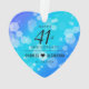 Celebrate the 41st blue topaz wedding anniversary with this stylish ornament! Elegant black lettering with hexagonal confetti on a cerulean blue background add a memorable touch for this special occasion and extraordinary milestone. Personalize with couple's names and wedding date. Reverse shows identical design. Use as is, or replace with a photo. This design is optimized for the circle, oval, heart, and shirt shapes.
