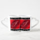 Nothing says "you complete me" or "your better/other half" than lovers' mugs. Celebrate the 42nd wedding anniversary in style with this commemorative pair! Elegant white script and serif lettering with hexagonal confetti on marbled cherry red and black backgrounds add a memorable touch for this special occasion and extraordinary milestone. Customize with the happy couple's names, add an initial or monogram for their surname, and add dates for their jasper anniversary.