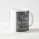 Celebrate the 4th linen wedding anniversary with a couple of these stylish giant coffee mugs! Elegant lettering with hexagonal confetti on a grey linen background add a memorable touch for this special occasion and milestone. Personalize with the couple's names, dates of marriage and/or congratulatory messages. Reverse shows identical design.