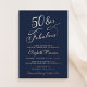 Elegant dark navy blue 50th birthday party invitation featuring "50 & Fabulous" and your name in chic scripts and your party details in simple modern lettering, all rendered in your choice of genuine gold, silver or rose gold foil.